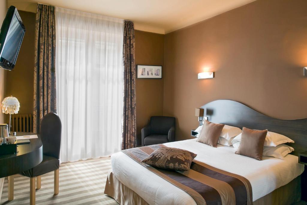 L'hôtel compte 47 chambres de 20 à 25m2 à l'ambiance raffinée, pouvant accueillir de 1 à 4 personnes, avec literie adaptée, salle de bain (douche à l'italienne ou baignoire, peignoirs, toilettes), coffre-fort, plateau de courtoisie et téléviseur écran plat.